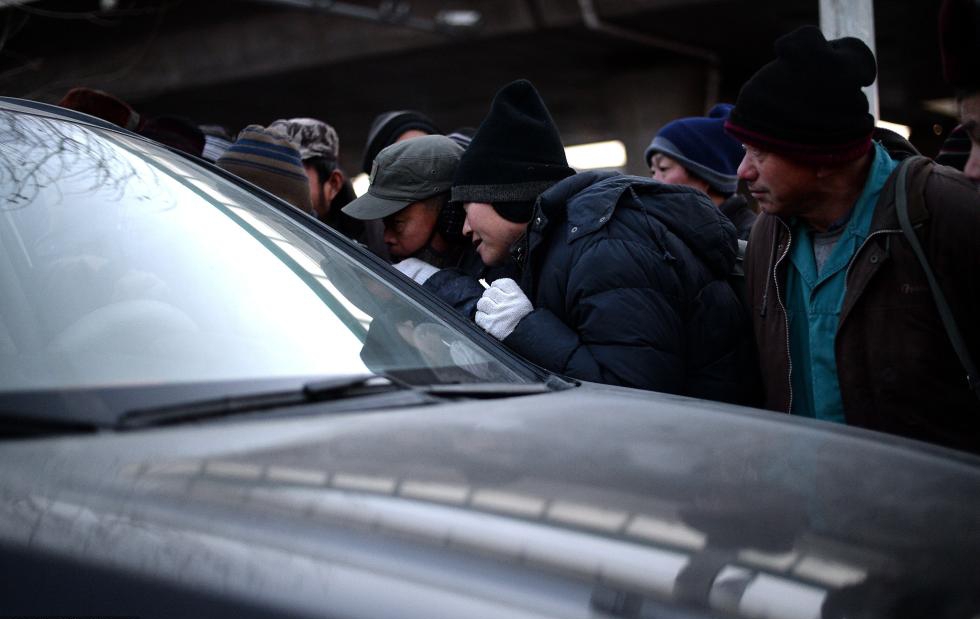 每当有工头到零工市场找工人时,众多农民工一拥而上寻找工作机会。