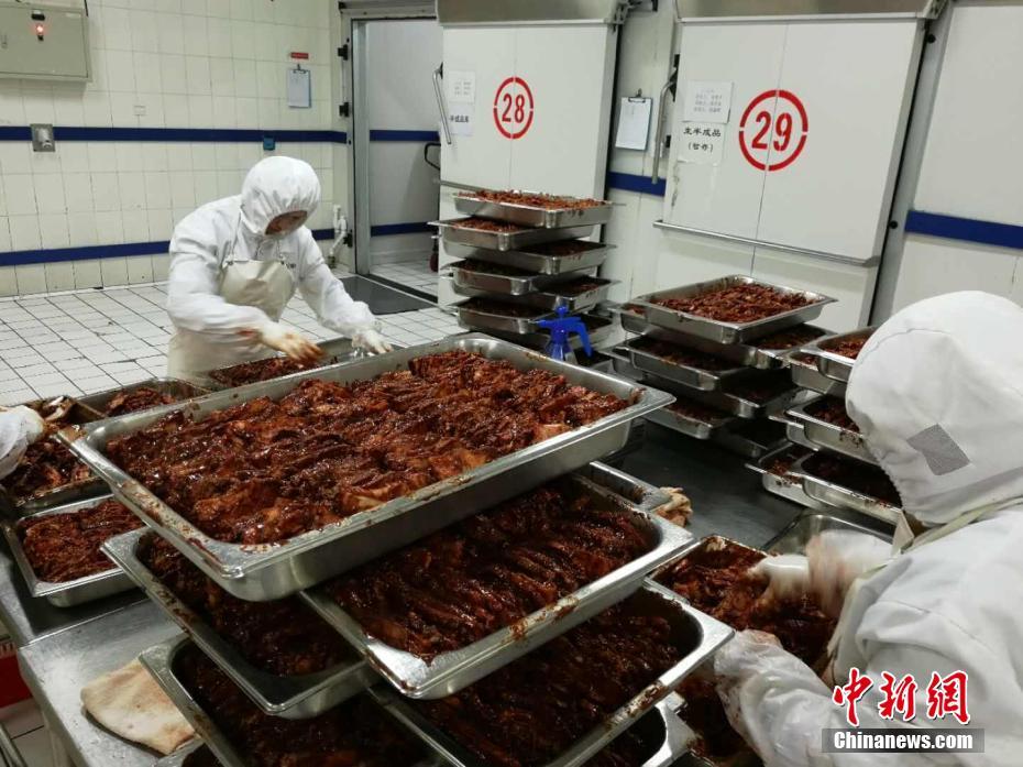 等待装盒的梅菜扣肉。中新网记者 李金磊 摄