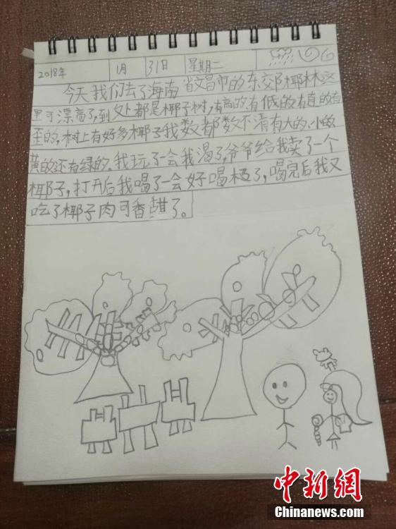 近日,河北保定市竞秀区前进小学的语文老师给一年级小学生布置写日记的寒假作业,没想到小朋友们“脑洞大开”地用图文结合的方式将立春节气、观月全食、过生日、游泳、打乒乓球、观察小动物等展现得妙趣横生。 文/霍瑾 张馨文 供图