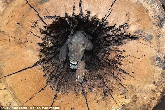 猎狗捕猎不幸夹在树干中 风化形成木乃伊