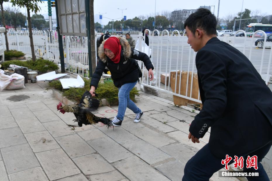 云南鲁甸农民组团到昆明街头售卖“过年鸡”