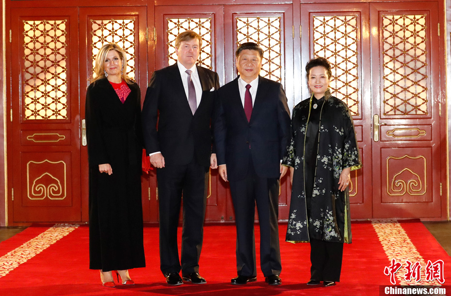 2月7日,中国国家主席习近平和夫人彭丽媛在中南海会见荷兰国王威廉-亚历山大和王后马克西玛。中新社记者 杜洋 摄