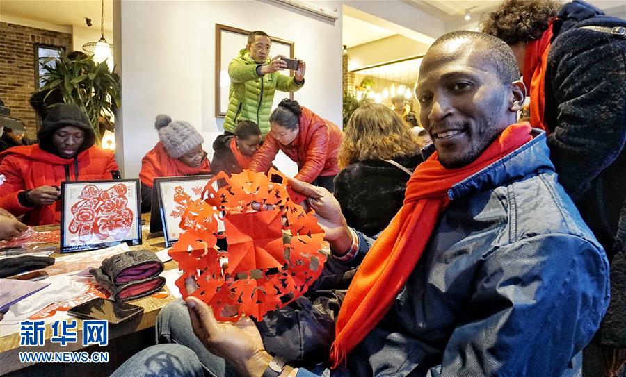 2月7日,来自博兹瓦纳的留学生在展示自己的剪纸。