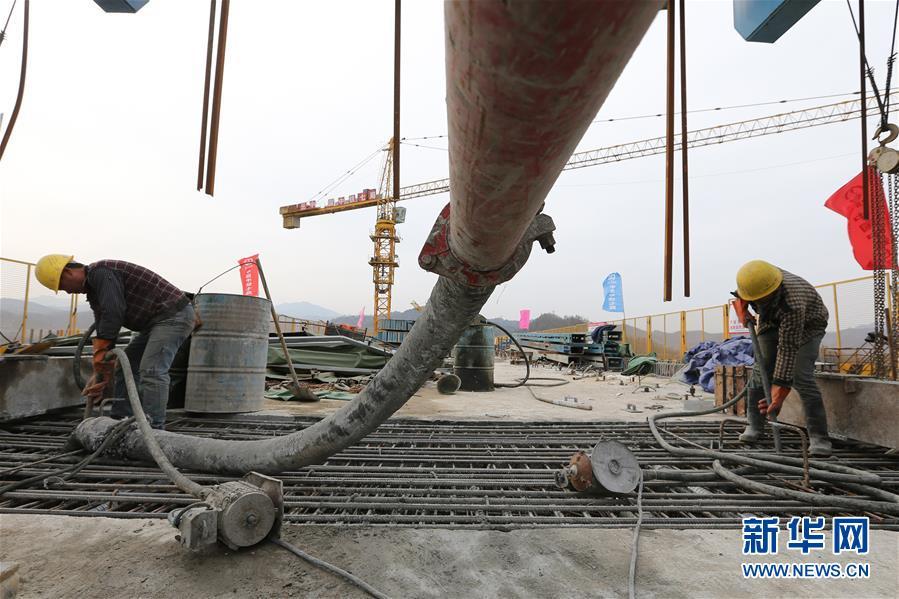 2月7日,中铁七局施工人员在浪河特大桥连续梁施工现场浇筑混凝土。