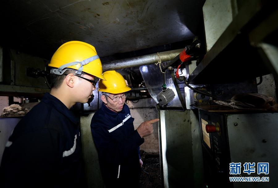 2月7日,陈建中(右)在指导自己的徒弟杨泽兴。他说要趁着退休前把自己多年来在镟修工作中得到的经验尽可能地传授给年轻人,帮助他们成长。