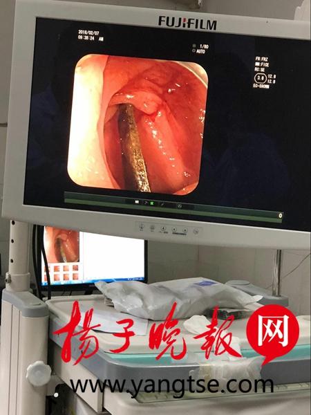 院方介绍,其实莫郸之前已在其他医院就诊过,但看了CT显示直肠乙状结肠交界处金属异物,不排除穿孔可能后,相关医生均表示异物太长,位置也不好,恐怕只能通过外科手术来取出,并且不排除还可能要造瘘。
