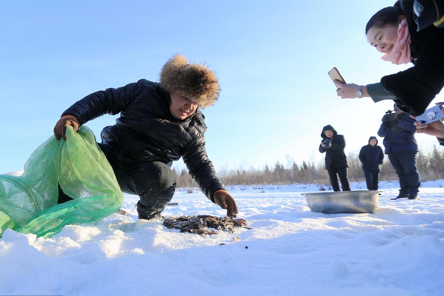 2018年2月6日,黑龙江省漠河县,最低气温是零下37℃。下午,阿木尔林业局居民大成子扛着冰镩子来到额木尔河边,准备收起农历新年到来之前的最后一网。