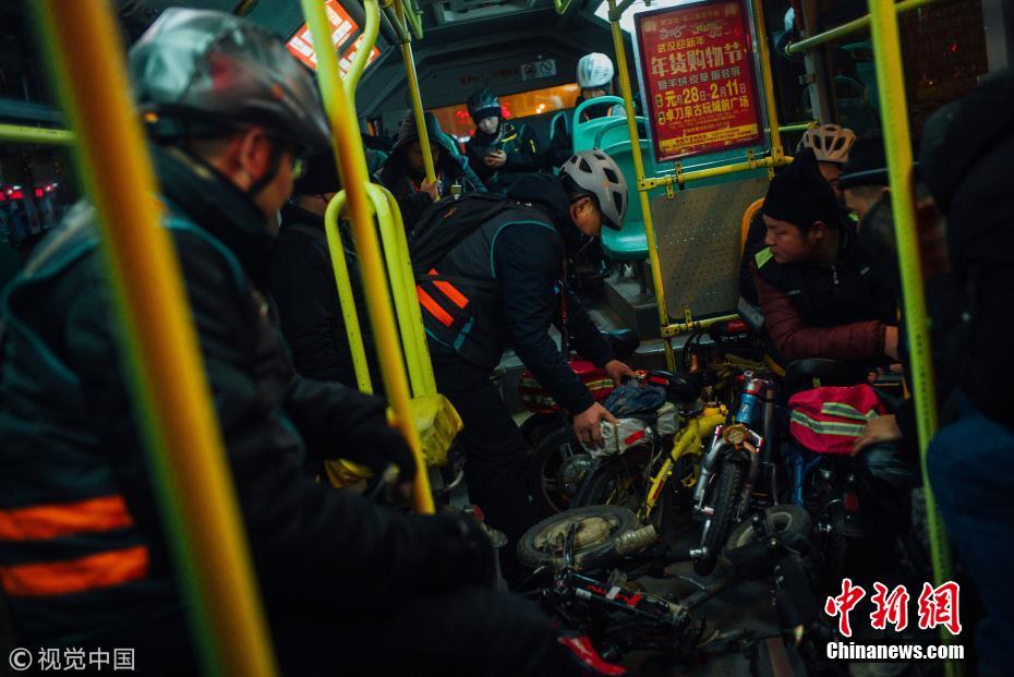 搭乘夜间免费公交的乘客。图片来源:视觉中国