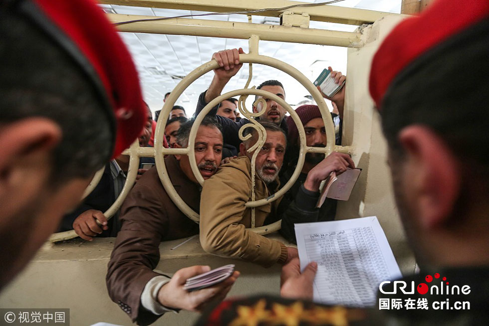 当地时间2018年2月7日,加沙市,埃及政府开放拉法口岸3天,加沙民众等待通过口岸。图片来源:视觉中国
