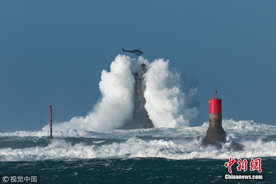 法国海岸掀30米高巨浪 直升机险遭吞没