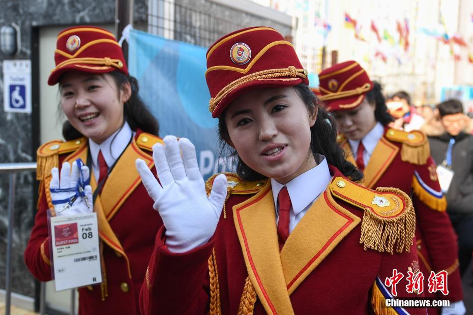朝女子乐团奥运村参加升旗仪式 很是抢眼