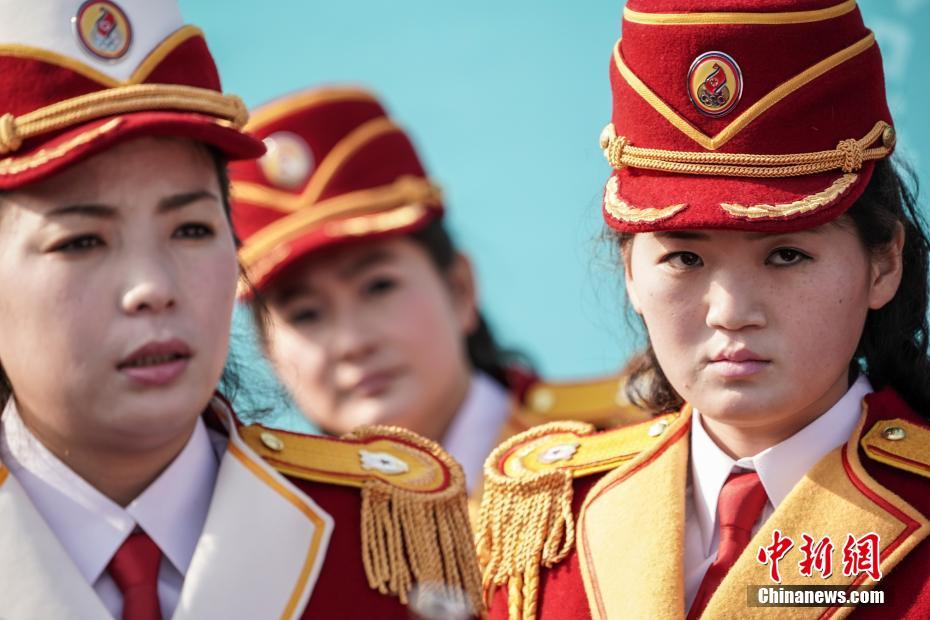 朝女子乐团奥运村参加升旗仪式 很是抢眼