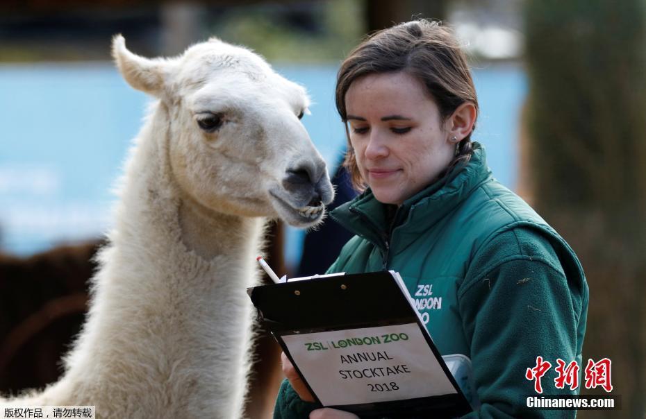 当地时间2月7日,英国伦敦动物园进行年度盘点,动物们在调查员旁看“花名册”。