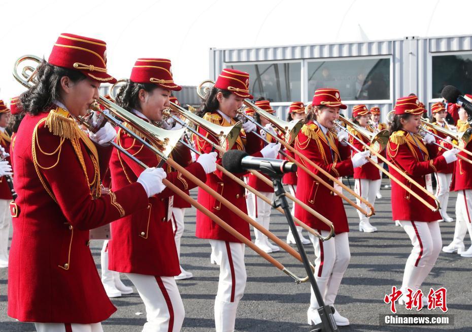 朝鲜女子乐团在奥运村升旗仪式上演奏