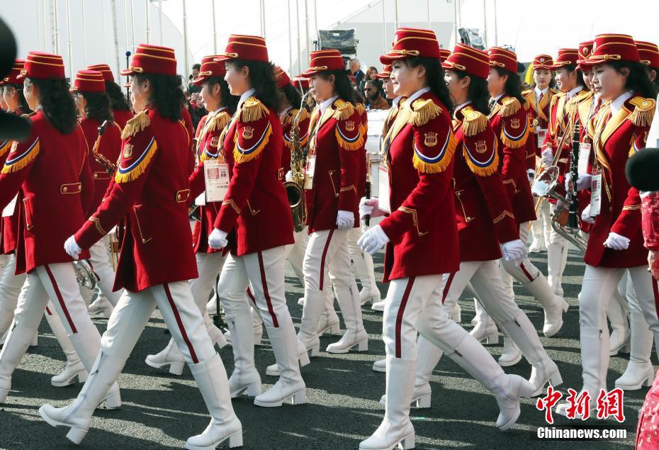 2月8日,朝鲜冬奥代表团在韩国江陵奥运村举行升旗仪式,现场进行演奏的女子乐队吸引了大批媒体的关注。中新社记者 宋吉河 摄