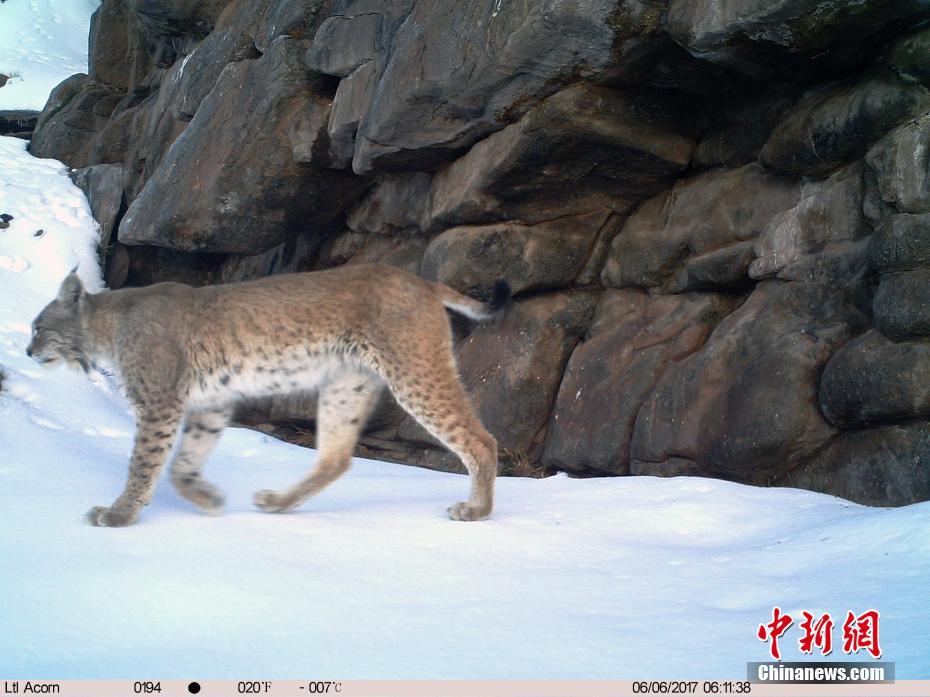 ​2月8日,青海省祁连山自然保护区管理局对外发布,2017年在祁连山国家公园(青海片区)内开展大规模野生动物监测工作时,红外相机记录到的到多种野生动物。图为猞猁。(青海省祁连山自然保护区管理局供图)
