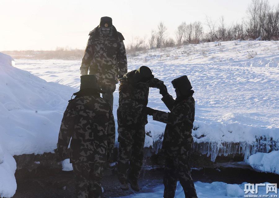 “今天就算挺冷了吧?” 贾晨翔笑了,“这两天还算暖和,头两天巡逻袜子得穿两双,走出来5分钟基本就冻透了”。“最冷时候温度达到零下47度, 但是江面温度更高一些,哎,王哥……” 牛书磊口中的王哥常在封冻期时上江面凿冰网鱼,一来让游客看着好玩,回家炖上还能给游客们尝尝鲜。 “但也容易产生越界打冰眼情况,所以我们每天执勤卡点巡逻重点任务就是巡查边境渔民作业情况,看着点呗,要不很容易就撩国界了。” 虽然和王哥是老相识,但每次看到好奇的游客围观他网鱼,牛书磊总还要过来啰嗦嘱咐几句:“这得多少天没起了,好几天了,出水了,挺快啊,感觉怎么样?”