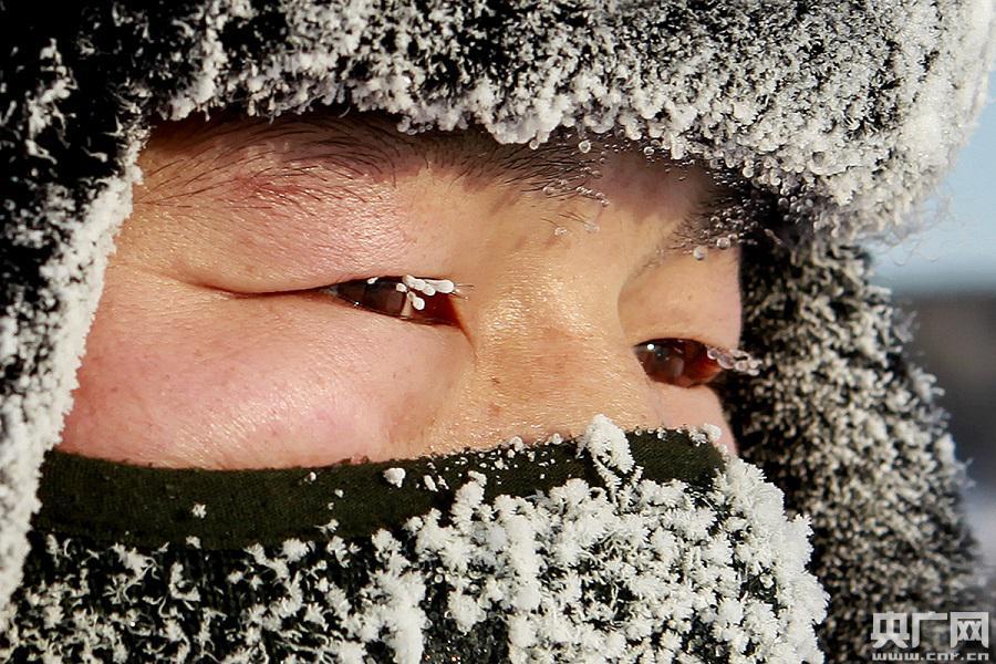 “从来没体验过这么冷。” “玩得高兴啊,这是黑龙江界江,千万别过去!” 边走边聊,时间过得也快。五公里的步行巡逻段走到了尽头,牛书磊和贾晨翔的眼睛眉毛早已结满了白霜,头顶也开始冒了热气。“刚出来特别冷,几分钟身体就冻透了,然后越走越热,身体里面热外面冻成了硬壳,得长了会有这种感觉,走一、两个小时得。”贾晨翔不以为然地说。