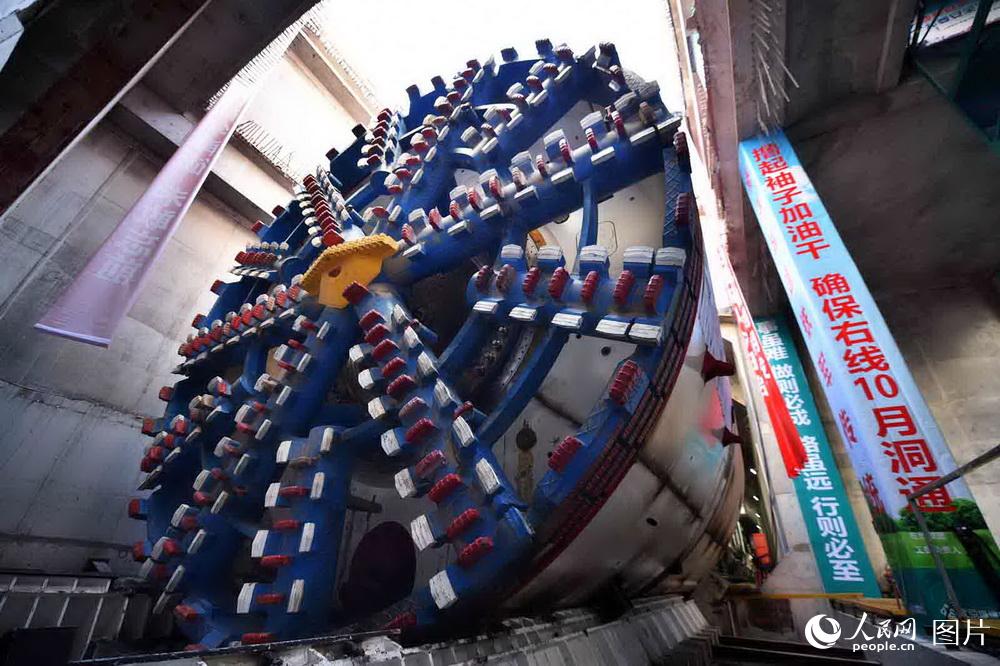 2月7日上午11:06,8.8米直径盾构“筑梦号”在北京新机场线磁各庄站北盾构始发井正式始发,为全线盾构段顺利贯通、早日移交铺轨打下良好基础。“筑梦号”盾构机是北京城建集团针对该工程长距离全断面密集卵砾石地层掘进的特点,专门采购的全新高性能辐条式土压平衡盾构机,刀盘直径为9.04米,主机长11.9米,整机总长120米,总重1409吨。由北京城建承施的北京轨道交通新机场线一期工程土建06标,全程3公里,为磁各庄站~1号区间风井区间段,包括明挖法盾构始发井、盾构法区间隧道和明暗挖结合施工的1号区间风井兼接收井。北京新机场轨道线为社会化引资项目,是一条连接中心城与新机场的轨道交通线路。线路定位为快速、直达、高品质的轨道交通专线,设计时速高达160千米/小时,在国内城市轨道交通领域尚属首次,列车采用架空式接触网供电。线路全长41.36公里,其中地下线23.65公里,地面高架及路基段17.71公里,全线设有北航站楼、磁各庄站和草桥站,共设有3站4区间,以及1座磁各庄车辆段,预留1座停车场。 人民网记者 雷声 摄