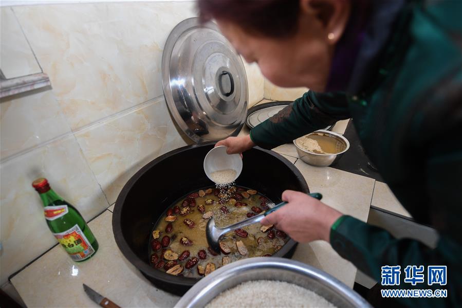 2月8日,其格其勒图的妻子娜仁在羊汤里煮米饭,里面有大米、红枣、葡萄干等,这种米饭叫“阿木斯”。