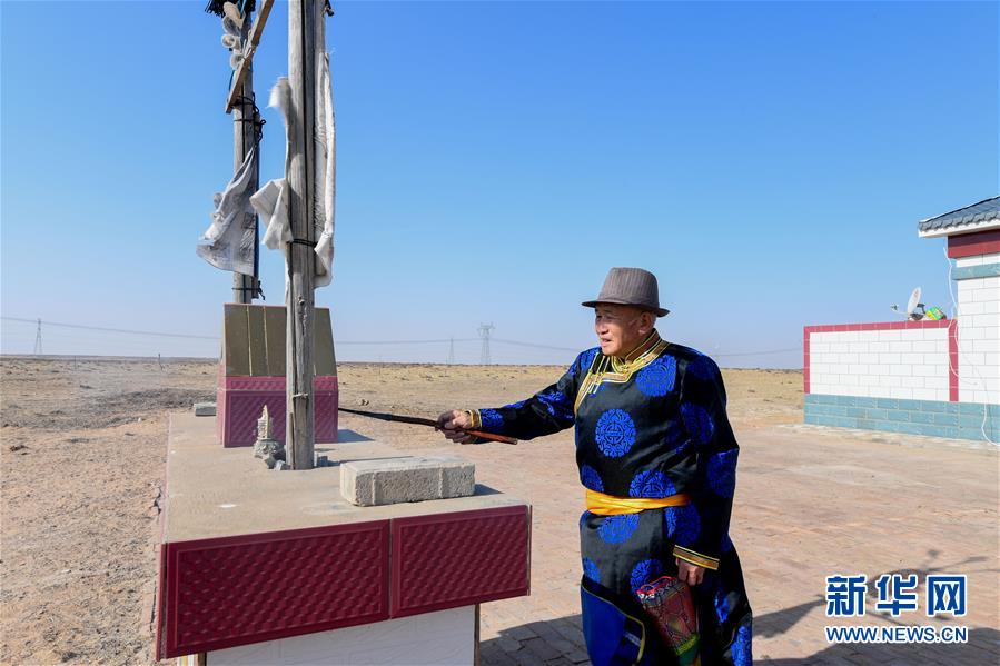 2月8日,羊胸叉煮熟之前,其格其勒图的父亲乌图那顺在苏力德台上燃烧松枝,这是祭灶的环节之一。