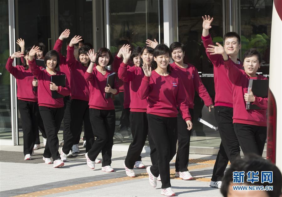 朝鲜艺术团成员抵达韩国江陵艺术中心,为当晚的演出做准备。图片来源:新华网