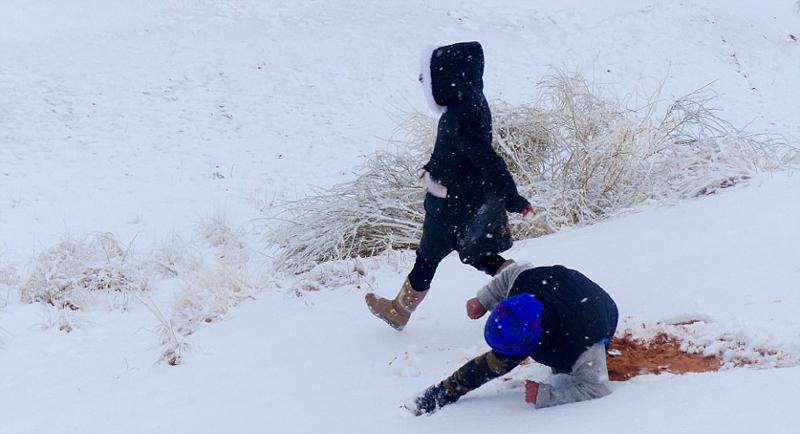 撒哈拉沙漠小镇时隔一月再降雪 引民众狂欢