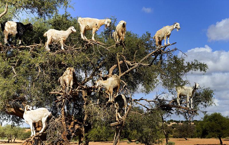 闻所未闻!摩洛哥一坚果树上站满14只山羊