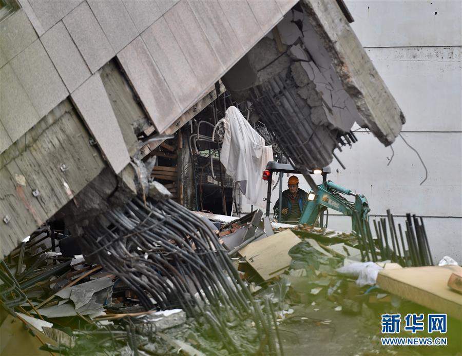 2月8日,一名救援人员在花莲云门翠堤大楼进行救援。截至8日上午11时,已有4名大陆游客在台湾花莲地震中遇难。负责搜救的现场指挥人员说,倒塌的云门翠堤大楼中还发现5名大陆游客被困。2月6日23时50分,台湾花莲县附近海域发生6.5级地震,此后余震不断。 新华社记者 岳月伟 摄 图片来源:新华网