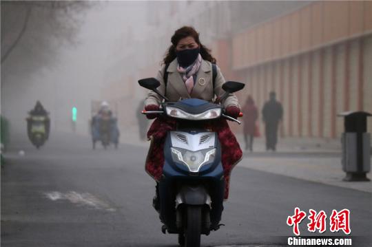 图为沙尘笼罩中匆匆出行的民众。 成学磊 摄