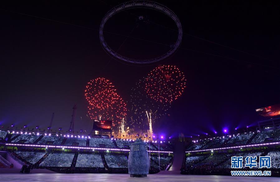 2月9日,2018年平昌冬奥会开幕式在平昌奥林匹克体育场举行。 这是开幕式上的烟花表演。(2月9日摄) 新华社记者吕小炜摄