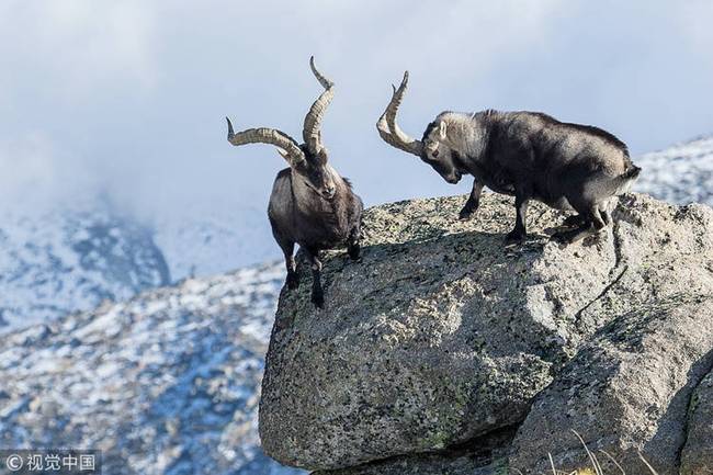 拼死一搏! 两只山羊悬崖边搏斗输者被迫跳崖