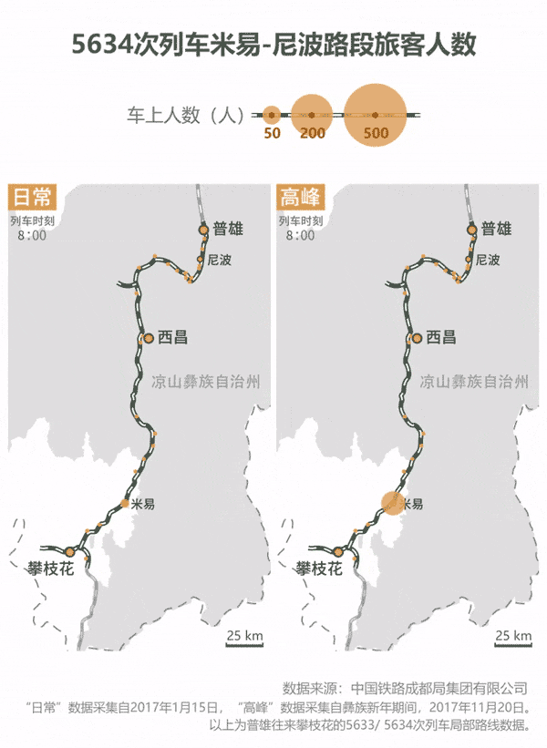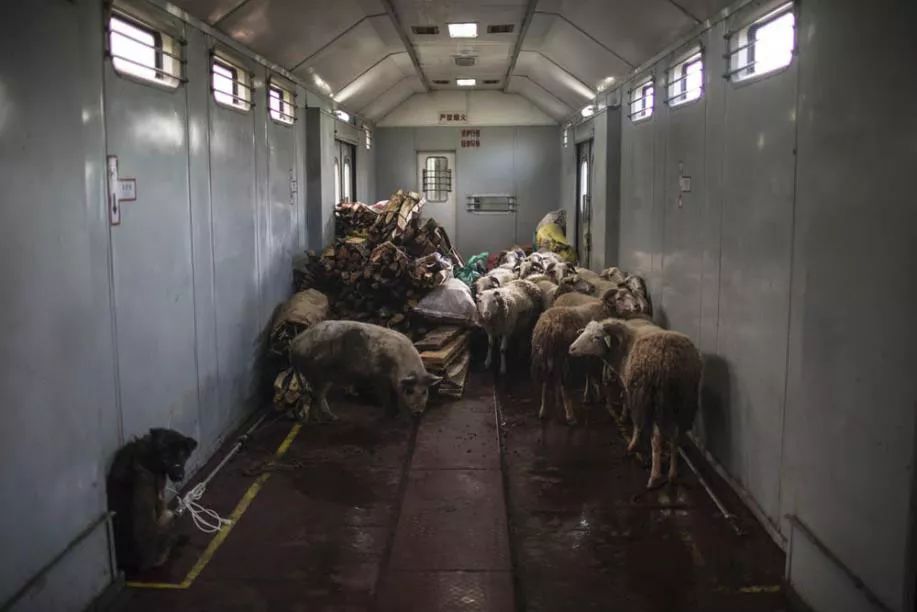 这是2015年11月彝族年期间,河北摄影爱好者拍下的影像。阿西阿呷协助从新凉站上车的猪贩子,将肥猪从2号车厢疏散到12号行李车厢。