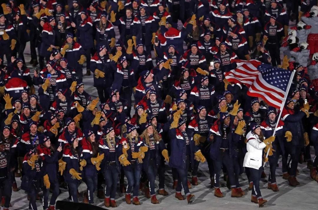美国代表团参赛阵容庞大,旗手是索契冬奥会铜牌获得者、第4次参加奥运会的无舵雪橇女将伊尔林·哈姆林。值得一提的是,美国冬奥代表团的开幕式旗手是由该国8个冬季运动协会各推举的一名候选人,通过投票来产生的。由于这次投票打成了4比4平,所以由哈姆林担任旗手最终是由投掷硬币决定的。