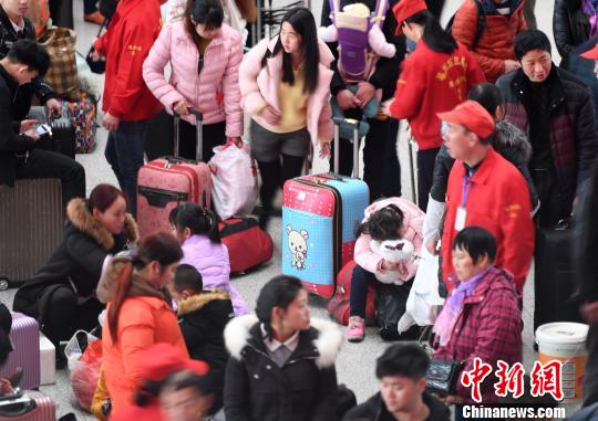 2月9日,福州火车北站一位小女孩抱着布娃娃在休息。随着春节日渐临近,福州火车站迎来节前春运客流高峰。 张斌 摄