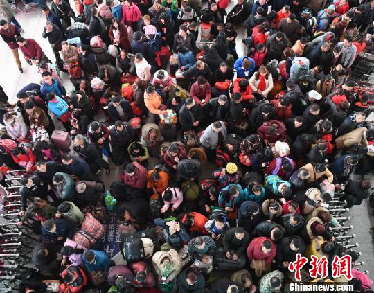 2月9日,福州火车北站旅客在候车厅排队等候检票上车。据中国铁路总公司消息,当日,全国铁路预计发送旅客940万人次,增开旅客列车944列。 张斌 摄