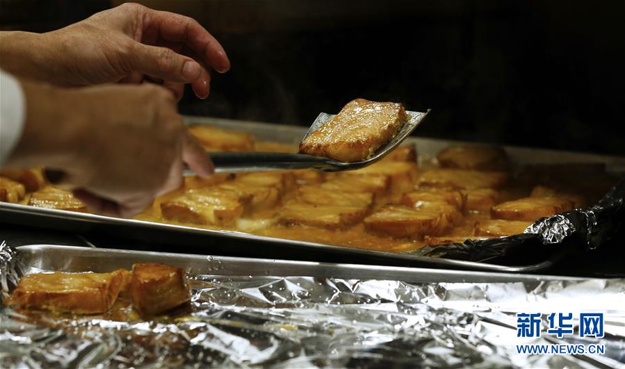 2月8日,在美国洛杉矶,厨师制作烤鳕鱼。