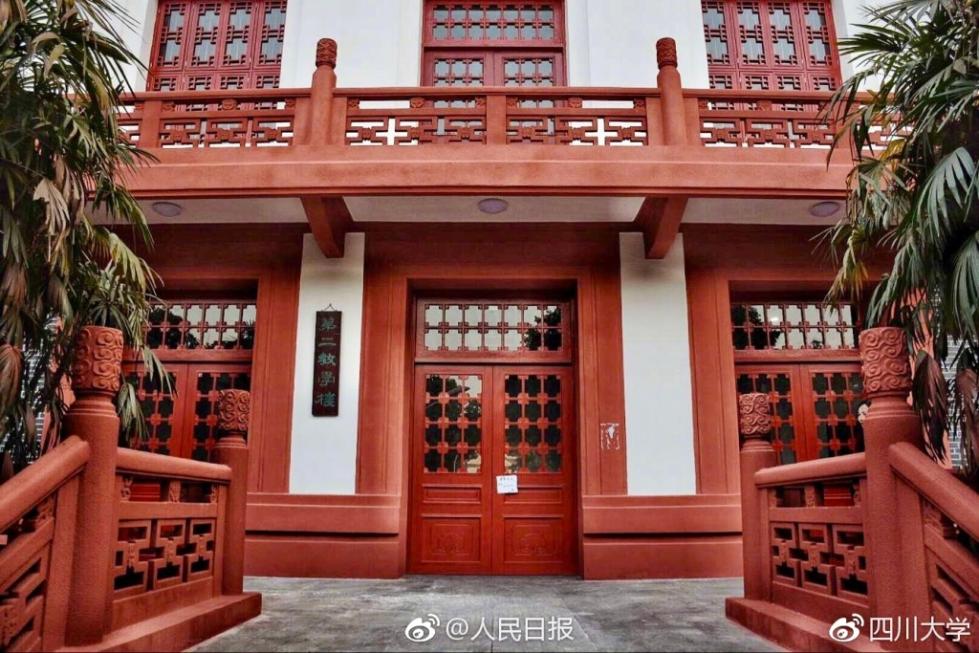 近日,四川大学望江瑞文楼完成翻新。翻新后的教学楼白墙红瓦、古朴简约、静谧典雅,处处都透露着中国风的美。网友:又是别人家的学校!