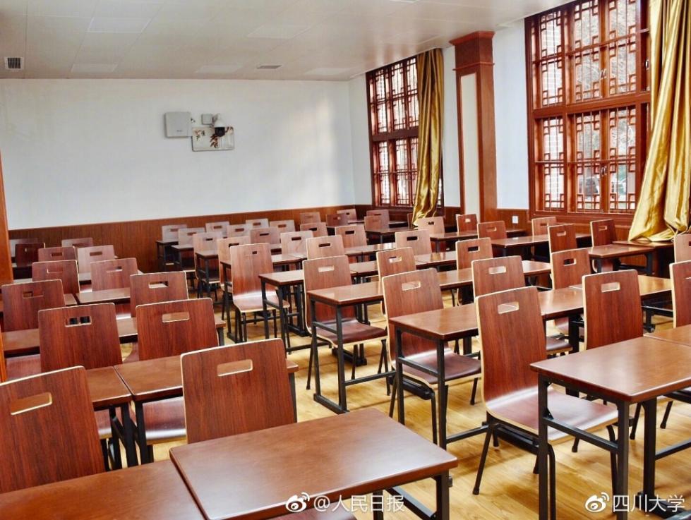 近日,四川大学望江瑞文楼完成翻新。翻新后的教学楼白墙红瓦、古朴简约、静谧典雅,处处都透露着中国风的美。网友:又是别人家的学校!