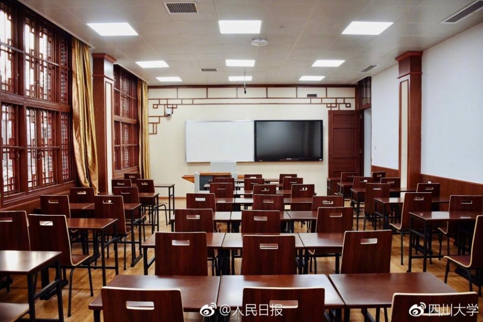 近日,四川大学望江瑞文楼完成翻新。翻新后的教学楼白墙红瓦、古朴简约、静谧典雅,处处都透露着中国风的美。网友:又是别人家的学校!