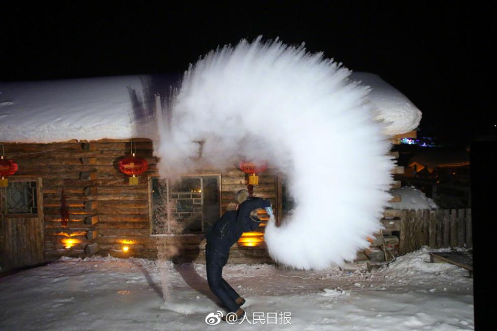 为称霸朋友圈 游客零下26度拍泼水成冰大片