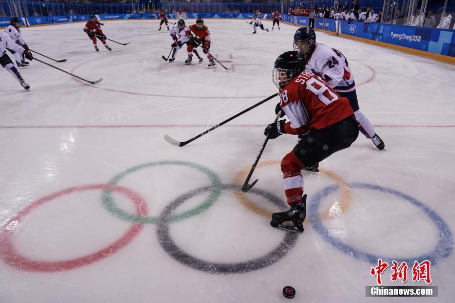 2月10日,2018平昌冬奥会女子冰球比赛开战,朝韩女子冰球联队首秀对阵瑞士队。中新社记者 崔楠 摄