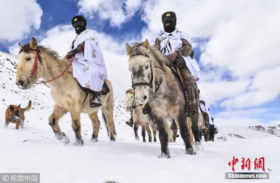 西藏阿里-20℃极寒 边防官兵骑马踏雪巡边境