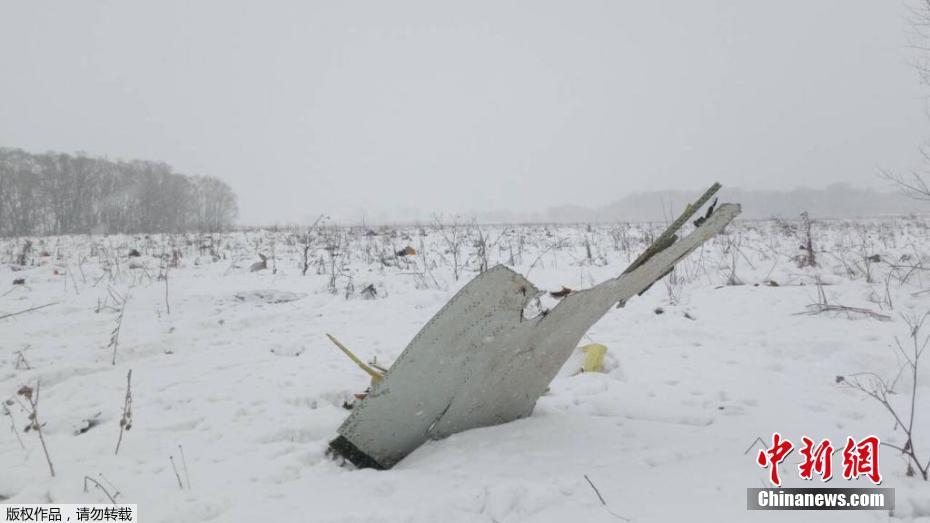 俄罗斯载71人飞机坠毁现场 雪原上散落飞机残骸