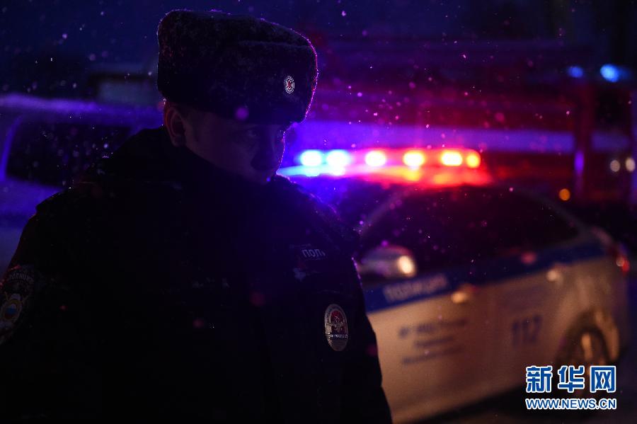 2月11日,在俄罗斯莫斯科州,警察在坠机地点外警戒。新华社发(叶甫盖尼·西尼岑摄)