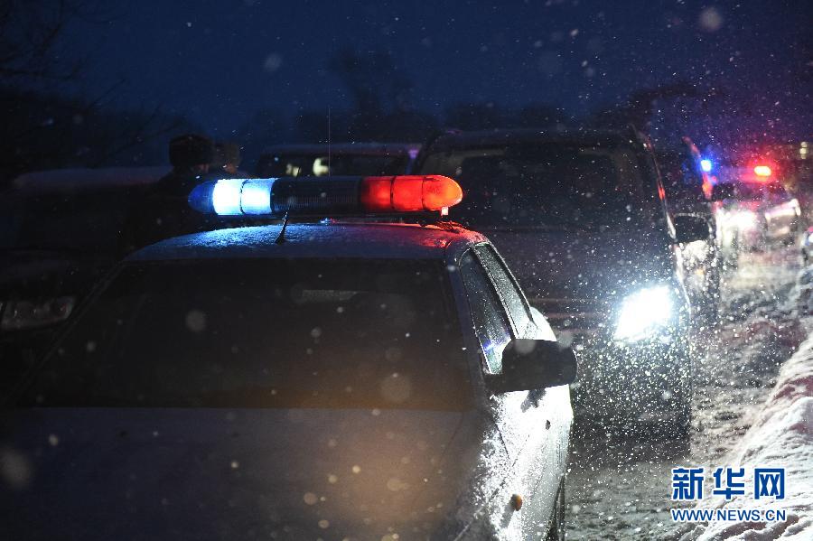 2月11日,在俄罗斯莫斯科州,警察在坠机地点外警戒。新华社发(叶甫盖尼·西尼岑摄)