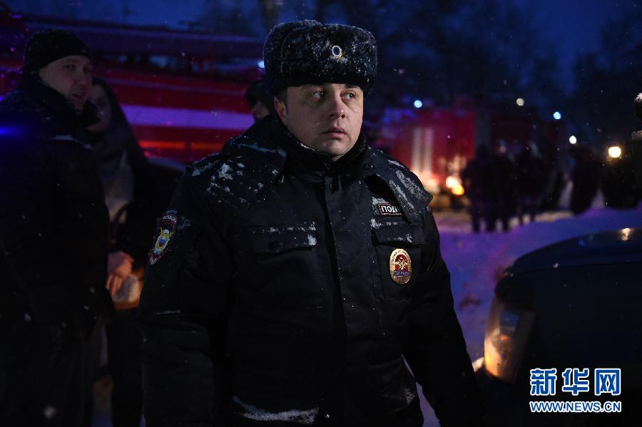 2月11日,在俄罗斯莫斯科州,警察在坠机地点外警戒。新华社发(叶甫盖尼·西尼岑摄)