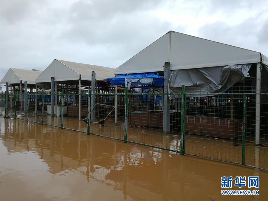 这是2月10日在萨摩亚首都阿皮亚拍摄的一个被洪水淹没的商品市场。