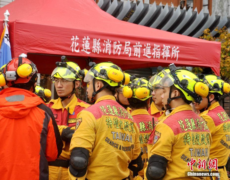 ​图为从地震“重灾区”花莲云门翠堤大楼撤离的救援人员。 中新社记者 肖开霖 摄