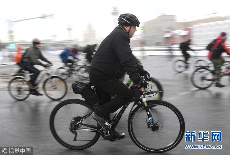 2月11日,俄罗斯莫斯科,民众参加冬季骑自行车活动。(图片来源:视觉中国)